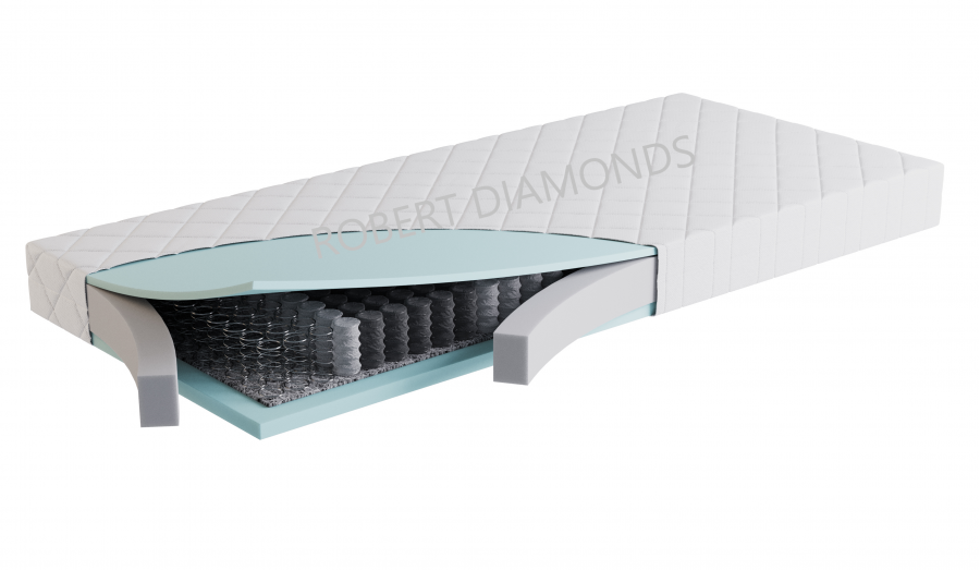 Použitý materiál PUR pena 35 kg/m3, taštičková pružina 250 ks/m2