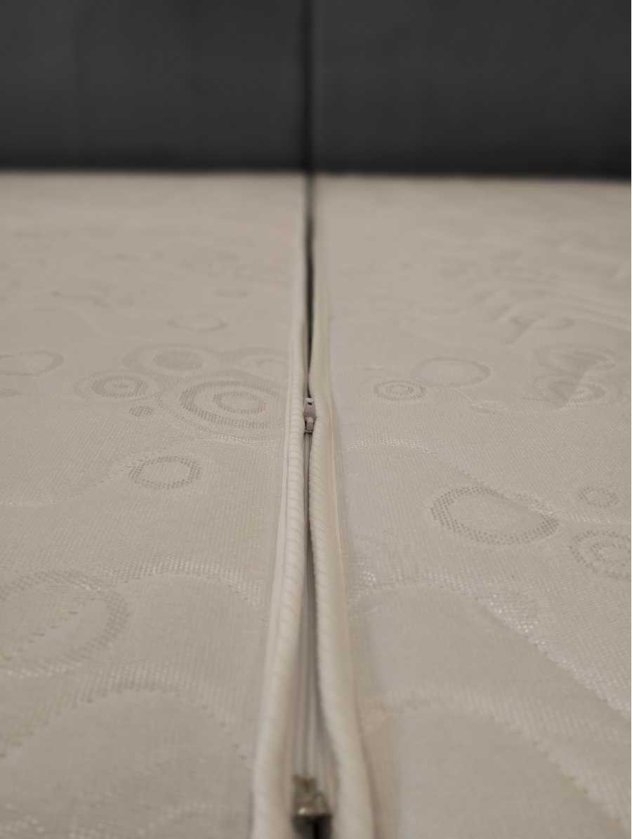 Matrac má perfektnú priedusnosť, pretože vo vnútri matraca cirkuluje vzduch vďaka čomu si jadro matraca zachováva suchú klímu a vysokú antialergickú ochranu. Pružiny sú rozložené do 7 zón tuhosti čo zabezpečuje, že jadro matraca dokonale kopíruje tvar ľudského tela vďaka čomu sa vaši hostia perfektne vyspia a oddýchnu si. Vrchná časť matraca je vyrobená z PUR peny s hustotou 28 kg/m3. Najväčšia pridaná hodnota na tomto exkluzívnom matraci je nehorľavý poťah, ktorý je vyrobený z certifikovanej kvalitnej tkaniny. Navyše na požiadanie zákazníka vieme našiť zips, ktorý spojí dva matrace a spraví z neho veľký dvojlôžkový matrac. Pre lepšiu predstaviteľnosť spojenia dvoch matracov v jeden veľký si môžte pozrieť foto v galérii. Okrem základných rozmerov vieme vyrobiť akýkoľvek atypický rozmer.