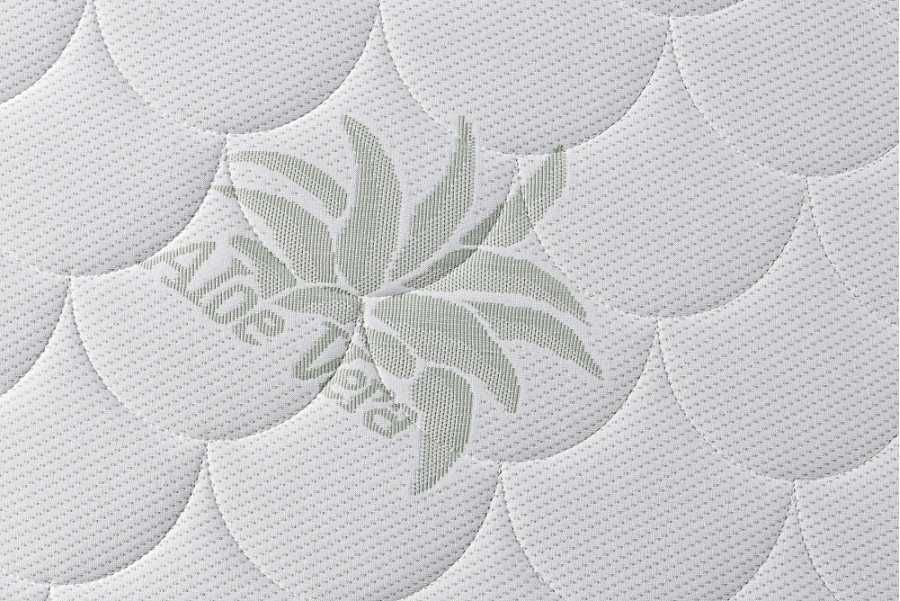 ALOE VERA Zloženie: 85 % polyester; 15 % viskóza, obohatený o výťažky z aloe vera, poťah prešitý s klimatizačnou výplňou, PES vláknom 250 gr/m2