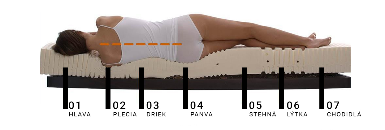 3. Zóna driek: zaisťuje správne držanie tela pri spánku a vyrovnáva chrbticu
