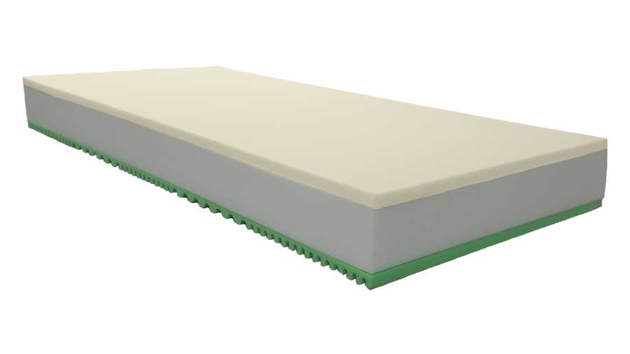 Použité materiály zaručujú optimálnu oporu tela, dlhú životnosť a vysoký komfort – VISCO pena 52 kg/m³, PUR pena so 7-zónovým profilom 30 kg/m³ a PUR jadro 30 kg/m³.