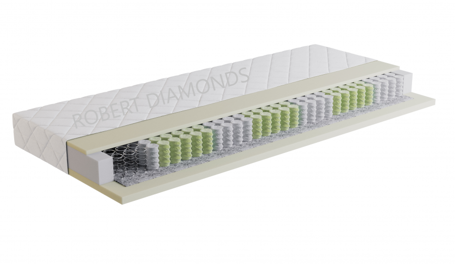 Použitý materiál PUR pena 35 kg/m3, taštičková pružina 250 ks/m2