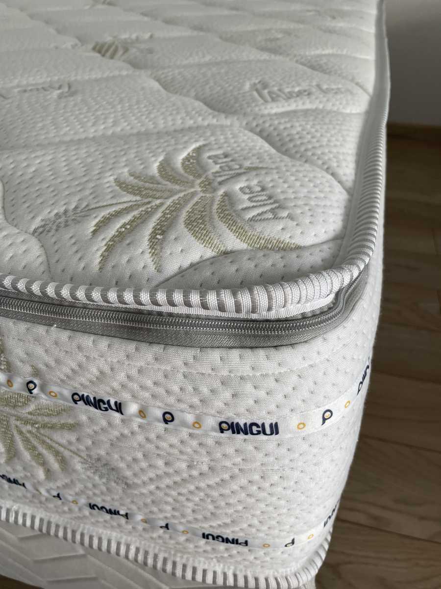 Tento ručne šitý špičkový matrac má poťahovú látku Aloe vera z oboch strán, s výťažkami z tejto rastliny obsahuje prevažne enzýnmi a mineralné látky, ktoré veľmi priaznivo pôsobia na pokožku, je certifikovaný a zdravotne nezávadný, spĺna normy kvality OEKO-TEX štandard. Je odzipsovateľný a prateľný na 40°C, po obvode sú umiestnené otvory na dokonale odvetranie matraca, taktiež si všimnete aj 2 ozdobne pásiky s nápisom PINGUI.