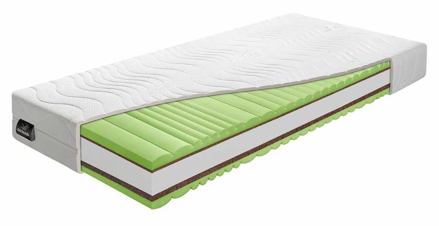 Použitý materiál HR pena 40 kg/m3, PUR pena 28kg/m3, kokosová vrstva 1300 gr/m2, hrúbka 1 + 2 cm