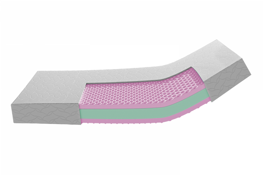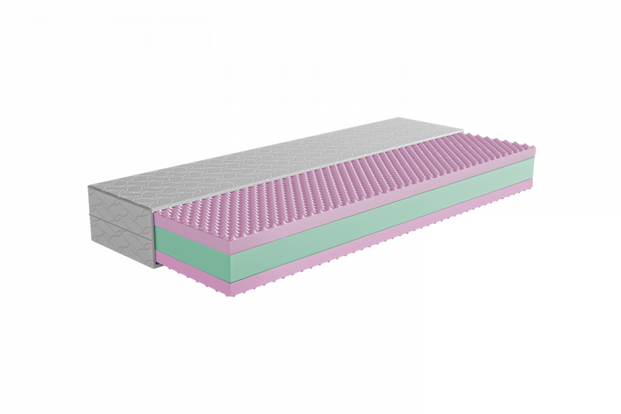 Jadro matraca tvorí PUR pena s vysokou hustotou 35 kg/m³, ktorá zabezpečuje výbornú stabilitu, odolnosť a dlhodobé zachovanie tvaru. Táto pena rovnomerne rozkladá tlak, čím prispieva k zdravému držaniu chrbtice a znižuje riziko preležanín.