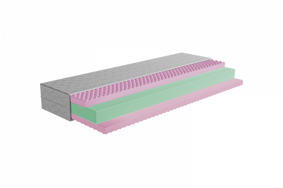 Jadro matraca tvorí PUR pena s vysokou hustotou 35 kg/m³, ktorá zabezpečuje výbornú stabilitu, odolnosť a dlhodobé zachovanie tvaru. Táto pena rovnomerne rozkladá tlak, čím prispieva k zdravému držaniu chrbtice a znižuje riziko preležanín.