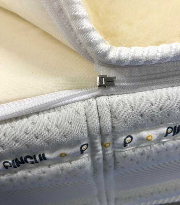 Kvalitný ručne šitý ortopedický matrac s 10 ročnou predlženou zárukou s použítím HR peny s hustotou až 40 kg/m3 bez použitia akýchkoľvek lepidiel s odľahčeným jadrom Sonnocell® vyššej tvrdosti s obojstranným využitím o celkovej výške 21 cm. Použitá poťahová látka Aloe Vera spĺňa prísne podmienky kvality OEKOTEX so zaradením do I. CLASS. Poťahová látka Aloe Vera je prešívaná okrasným vzorom spolu s 2cm Sonnocell® Visco Memory peny a termo vláknom, čo vytvára nie len príjemný pocit mäkkosti na dotyk, ale aj svojimi vlastnosťami sa jemne prispôsobuje kontúram tela. Druhá strana poťahu matraca je vyrobená z vlny Merino v kombinácií s Aloe Vera a prešívaná termo vláknom. Vlna Merino svojimi hydroskopickými a termoregulačnými vlastnosťami zaručuje pocit sviežosti a sucha pri odpočinku. Bočné strany matraca sú z látky Aloe Vera v kombinácii s 3D pásom na zvýšenie priedyšnosti celého matraca. Odporučaný rošt lamelový, pevný s medzerami do 6cm,polohovateľný. Matrac je doplnený o rozopínateľný zips, ktorý je umiestnený pod okrasnou lemovkou aby sa dal kompletne odzipsovať vlnený poťah, ktorý sa môže čistiť chemickým praním. Poťah z Aloe Vera neodporúčame prať, kvôli všitej pamäťovej pene ktorá by sa praním poškodila. Odporúčame iba ručné začistenie. Po celom obvode matraca sú všité 2 efektné pásiky s názvom PINGUI.